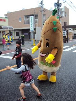 大津つつじ祭りは毎年4月中旬のつつじがきれいな頃に、昭和園・オークス広場・中心商店街(歩行者天国)・日吉神社で開催されています。相撲大会、音楽祭などのたくさんのイベントで賑わうこのお祭りでは、中心商店街が歩行者天国になり、音楽隊や子どもたちの武者行例によるパレードが行われます。そのパレードに、合志市ゆるキャラとして大津つつじ祭り実行委員会から招待されたヴィーブルくんは、色鮮やかなつつじの景色と大津のおいし~い食べ物の屋台を楽しみに、喜んで参加してきました。